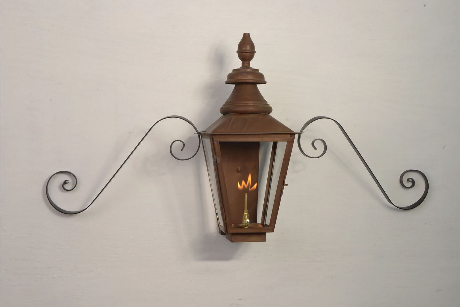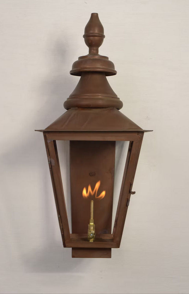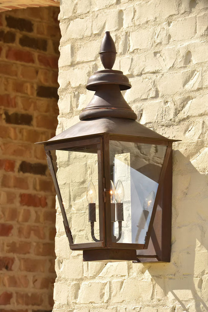 Traditional charm meets distinguished craftsmanship in the Birmingham Copper Lantern. A stately fixture that makes a lasting impression. Handcrafted from solid copper, this lantern features a classic tapered body crowned with an ornate, tiered finial for a refined architectural touch. Available in both gas and electric configurations, the Birmingham casts a welcoming glow ideal for entryways, patios, or historic-inspired exteriors. Its natural copper finish will gracefully weather into a rich patina, enhancing its vintage appeal. Offered in a variety of mounting options to suit your space, the Birmingham Copper Lantern blends timeless elegance with enduring performance.