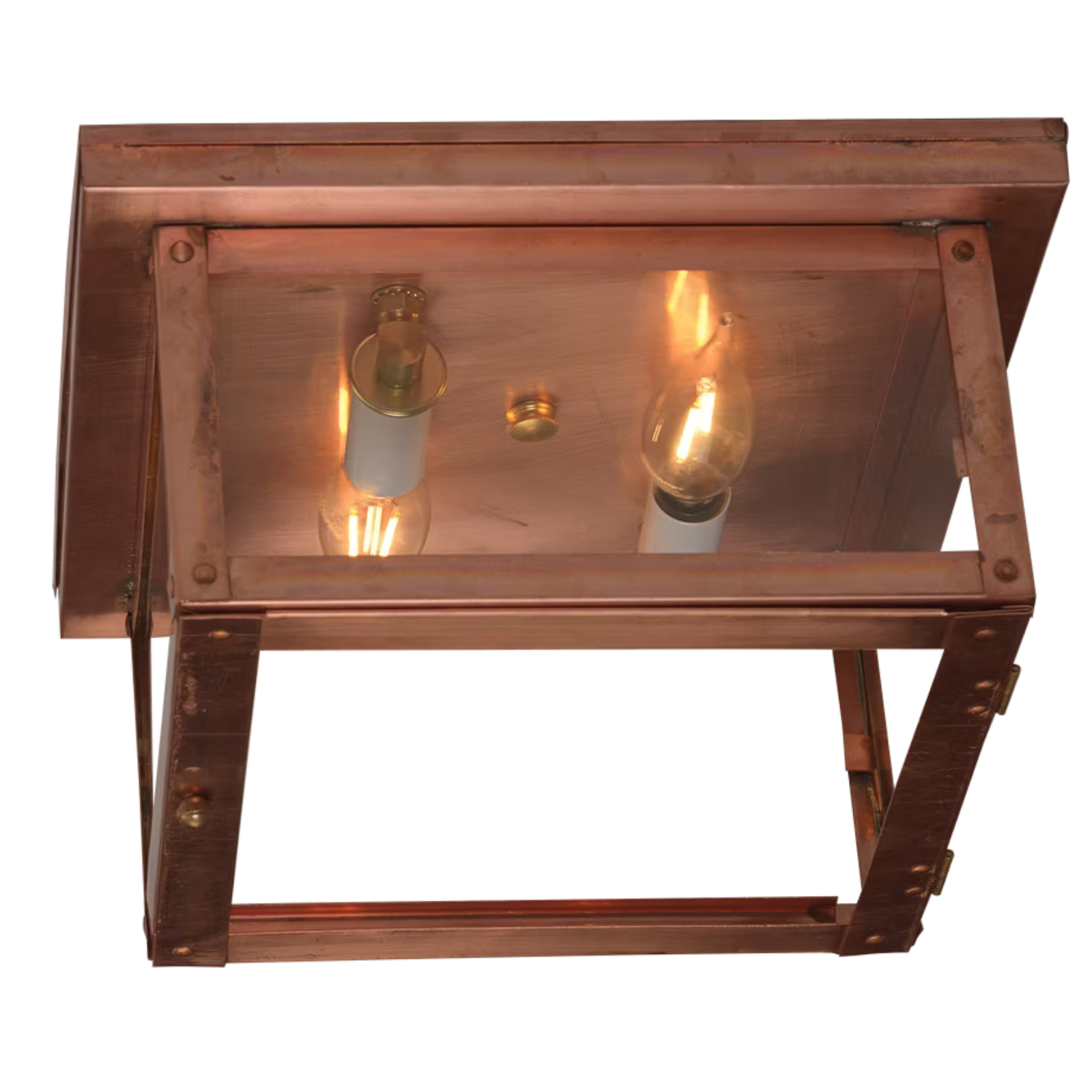 Vintage-style bulbs shine through the clear panels, casting an inviting glow that highlights the natural warmth of the copper. Finished with subtle brass hardware, this versatile fixture complements rustic, industrial, modern, and classic interiors alike bringing timeless style to entryways, porches, hallways, and covered outdoor spaces.