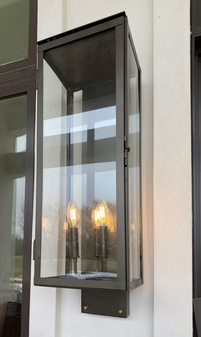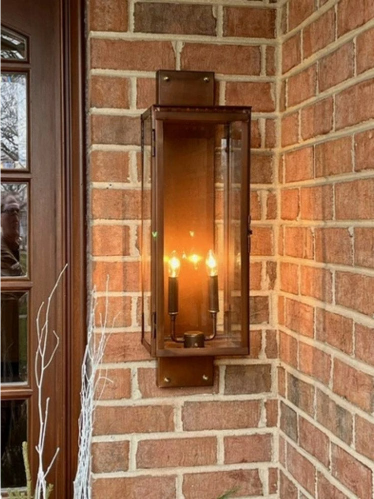 Sleek, refined, and architecturally striking, the Fifth Ave. Copper Lantern offers a modern take on timeless design. Handcrafted from solid copper with a tall, narrow profile and crisp, clean lines, this lantern makes a bold statement while maintaining elegant simplicity. Clear glass panels surround the flame or bulb, casting a radiant, welcoming glow ideal for entryways, patios, or garden walls.