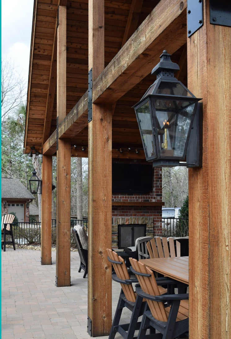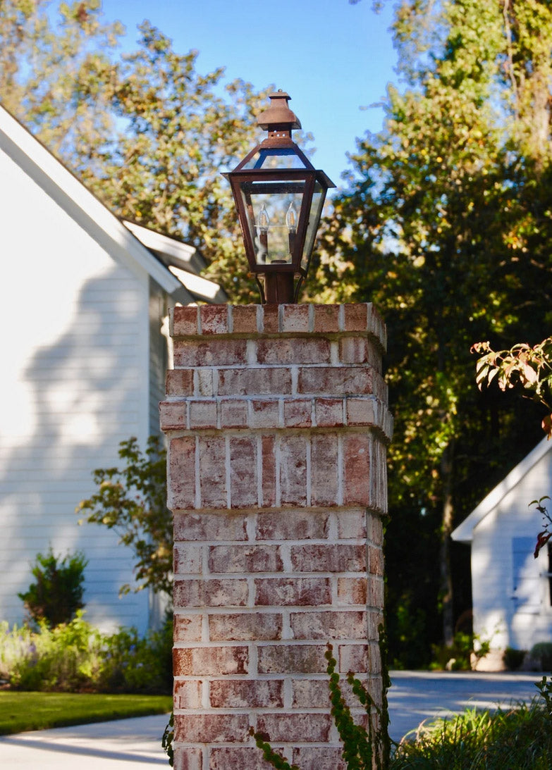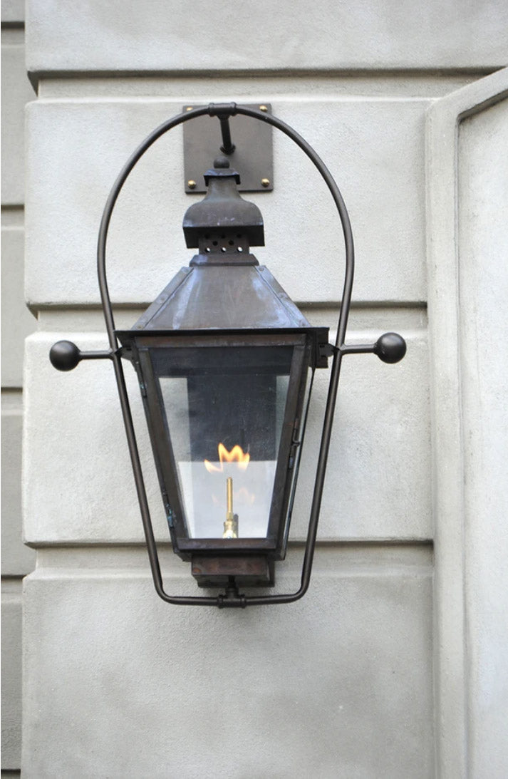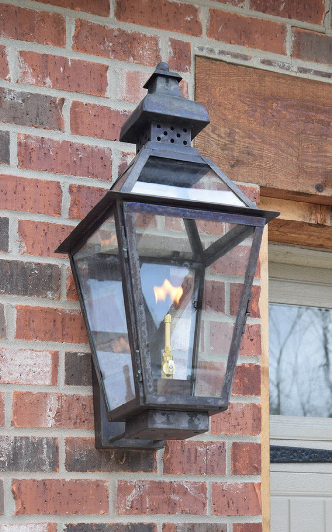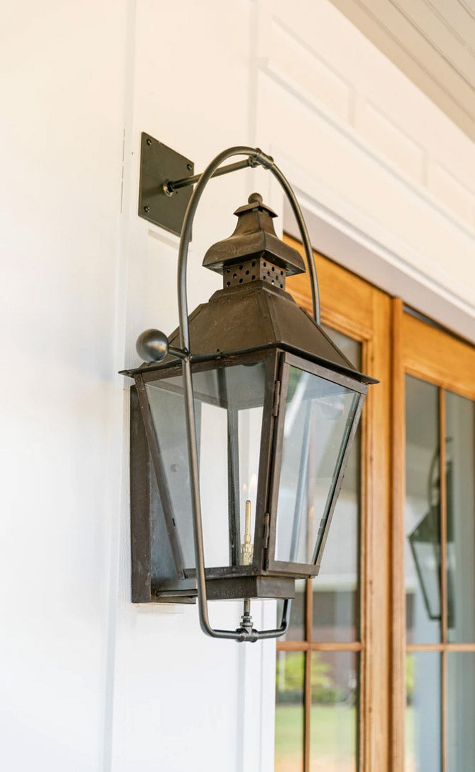 Classic charm meets timeless craftsmanship in the Logan copper Lantern. Featuring a traditional silhouette with a gracefully flared top and clean, tapered lines, the Logan exudes classic Southern charm. Handcrafted from solid copper, it’s designed to age beautifully, developing a rich patina over time. The lantern’s open design allows the warm glow, whether from a flickering gas flame or a steady electric light to shine through and create a welcoming ambiance.