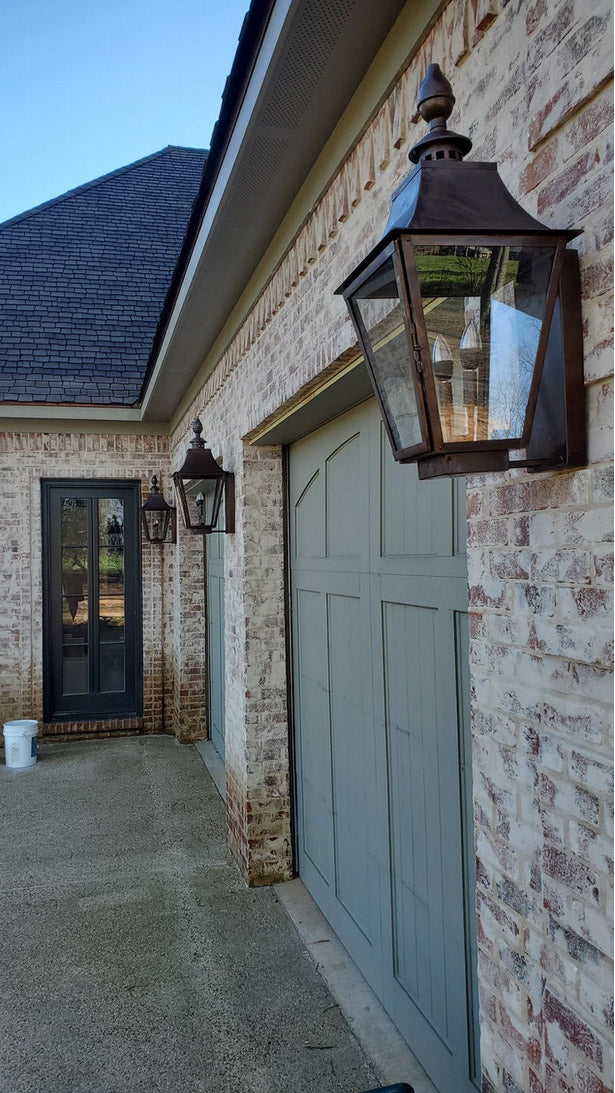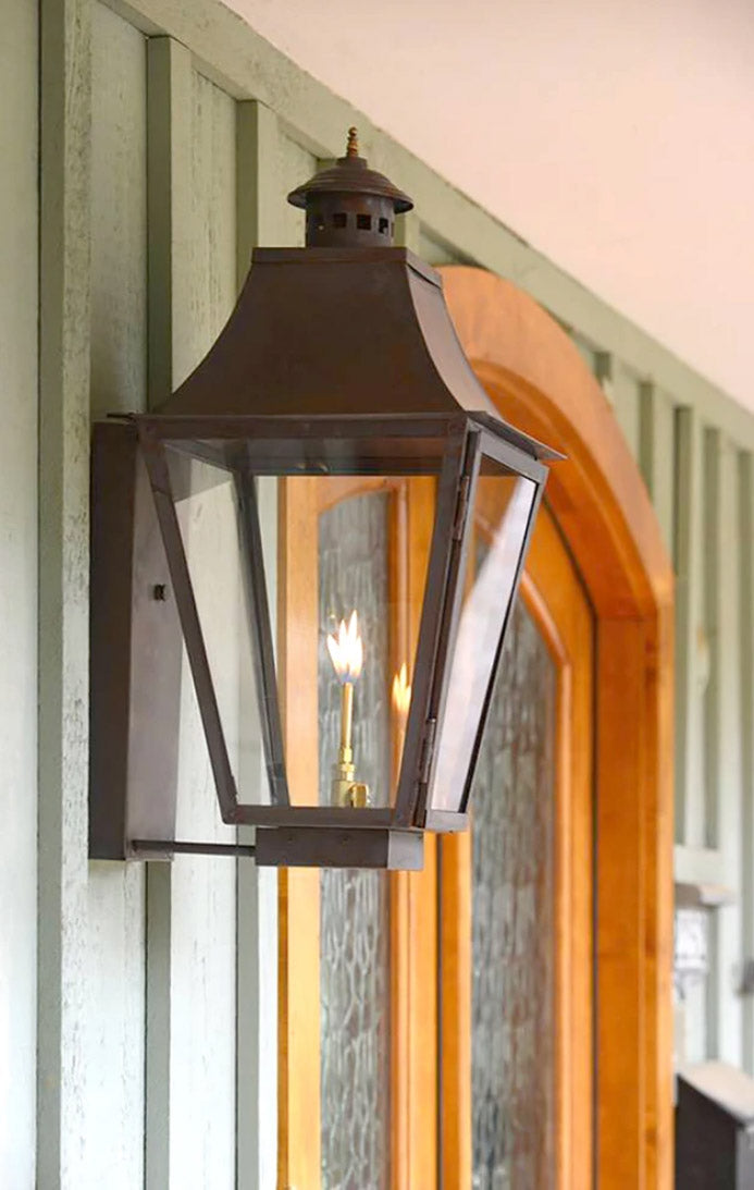 The Montrose Copper Lantern offers timeless elegance with its gently flared roofline and handcrafted design. This classic wall-mounted fixture brings a touch of historic charm and Southern sophistication to any exterior. Constructed from high-quality copper that naturally patinas over time, the Montrose is both durable and striking in appearance. Its tall, tapered body and open front frame allow the soft glow of gas or electric light to shine through with inviting warmth.