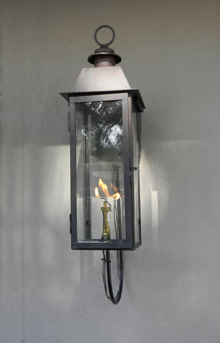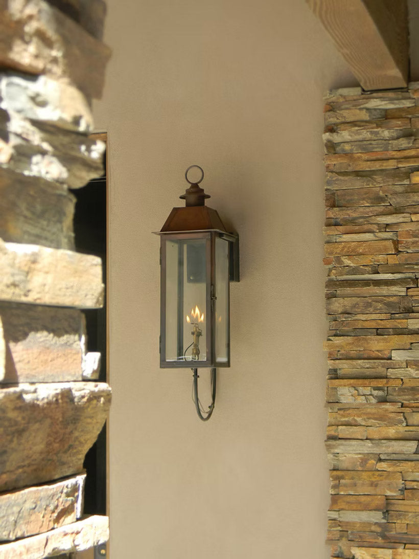 Timeless charm meets artisan craftsmanship with the Sweetwater Copper Lantern. Expertly handcrafted from high-quality copper, this stately lantern features a classic rectangular body and comes standard with an elegant top curl, adding a refined accent to any exterior space. Choose between a traditional gas flame or modern electric lighting to suit your needs.